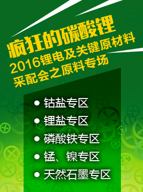 由于世界鋰資源主要集中在南美,中國占比不足2成,但對(duì)鋰鹽的需求方面,中國卻占到了50%以上,因此,國內(nèi)鋰鹽的產(chǎn)能情況也如10年前的鐵礦石一樣受制于人。隨著智利發(fā)生洪災(zāi)以及銀河資源的停產(chǎn),鋰鹽2015年的供應(yīng)更是捉襟見肘,并在2015年四季度表現(xiàn)的越發(fā)明顯。不過,隨著天齊、國鋰等企業(yè)的產(chǎn)能進(jìn)一步擴(kuò)充,預(yù)計(jì)在2016年二季度鋰鹽的產(chǎn)能問題會(huì)得到一定的解決。在市場(chǎng)前景一片大好而原材料受制的情況下,鋰電池正極材料及電解液企業(yè)都亟需解決鋰鹽的來源問題,為此,我們?cè)?016年伊始之際召開此次鋰電及關(guān)鍵原材料采配會(huì)/技術(shù)交流會(huì),在鋰鹽專區(qū)中,我們將探討鋰鹽的未來發(fā)展,并協(xié)助對(duì)接上下游企業(yè)。相聚長(zhǎng)沙,鋰想有你!